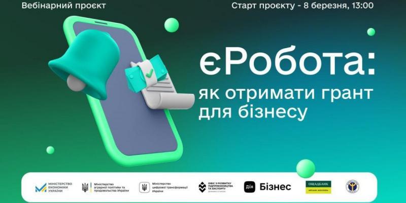 Міністерство економіки України, Міністерство аграрної політики та продовольства спільно з Міністерством цифрової трансформації, Офісом з розвитку підприємництва та експорту, національним проєктом Дія.Бізнес за підтримки Ощадбанк та Державної служби зайнятості запускають серію освітніх вебінарів «єРобота: як отримати грант для бізнесу».