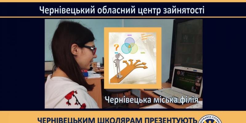 27 травня 2021 року в межах проєкту Чернівецького обласного центру зайнятості «Віртуальний майданчик вибору професій» для чернівецьких школярів фахівці служби зайнятості провели профорієнтаційний захід.