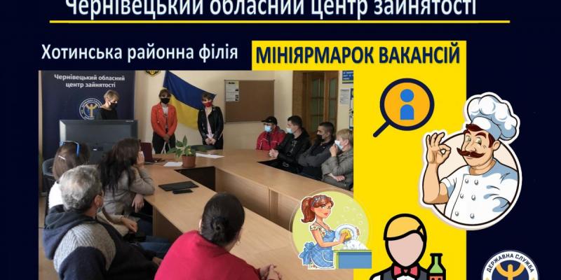 Служба зайнятості допомагає безробітним отримати роботу, а роботодавцю знайти необхідних працівників. 26 травня 2021 року у Хотинській районній філії Чернівецького обласного центру зайнятості відбувся мініярмарок вакансій.