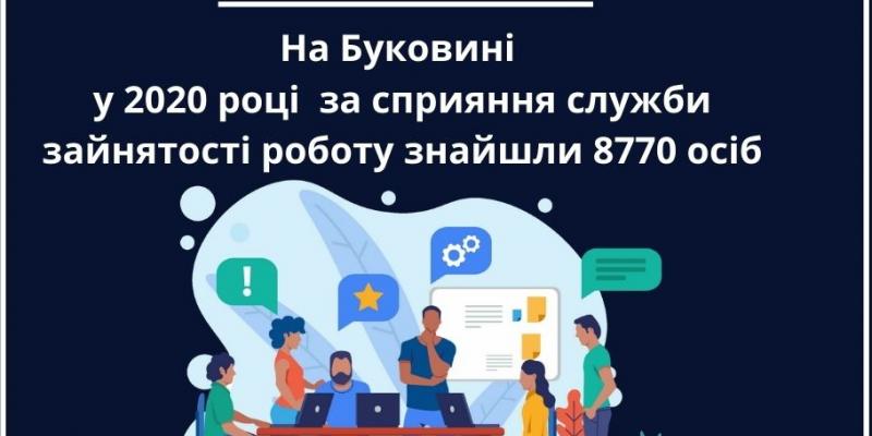 У 2020 році до Чернівецької обласної служби зайнятості за пошуком працівників звернулися 2211 роботодавців, які мали 10929 вакансій. Порівняно з 2019 роком кількість вакансій зменшилася на 32%. За сприянням служби зайнятості у минулому році роботу знайшли 8770 осіб