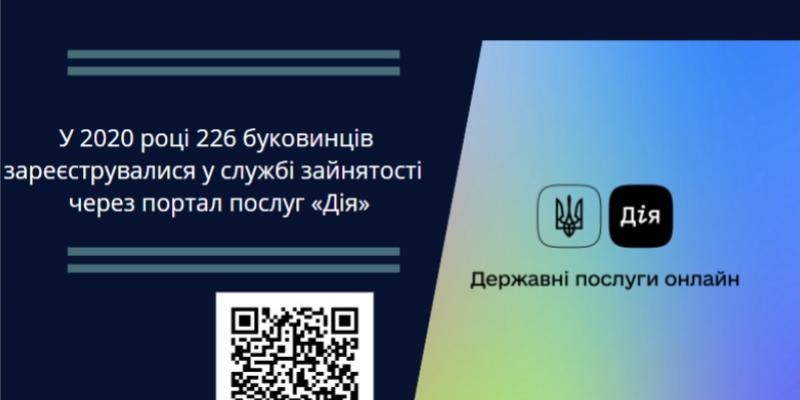 У 2020 році, з початку дії карантинних обмежень, 226 мешканців Чернівецької області, які виявили бажання стати на облік у центрах зайнятості області, скористалися електронною послугою з реєстрації та оформлення виплат допомоги по безробіттю на онлайн-порталі державних послуг «Дія».