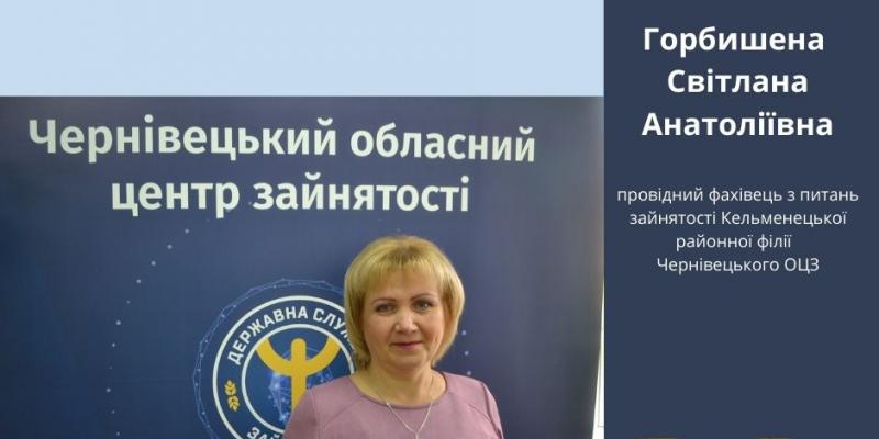 Світлана Горбишена працює в Кельменецькій районній філії Чернівецького обласного центру зайнятості з 1991 року, майже з самого початку створення служби зайнятості в районі.