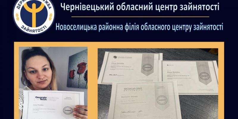 Фахівці Новоселицької районної філії Чернівецького ОЦЗ інформували безробітних про можливість пройти онлайн-навчання за програмами кращих університетів світу на міжнародній платформі Coursera. А нині є вже серед клієнтів служби зайнятості ті, хто успішно завершив навчання та отримав сертифікат.