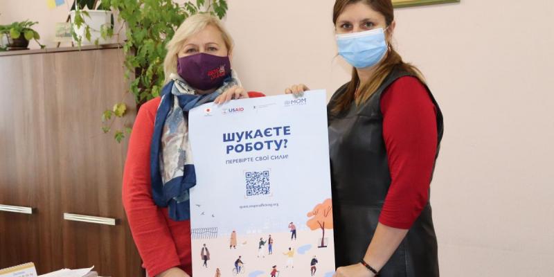 Інформаційна кампанія, присвячена питанням безпечного працевлаштування та протидії торгівлі людьми, до якої долучилися і фахівці служби зайнятості, триває. 11 листопада 2020 року заступниця директора Чернівецького обласного центру зайнятості Марія Кобєлєва зустрілася з виконавчою директоркою Центру громадської активності «Синергія» Наталією Батраковою.