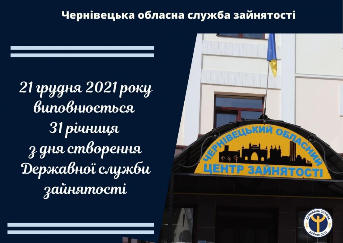 21 грудня 2021 року виповнюється 31 річниця з дня створення Державної служби зайнятості. За час свого існування служба пройшла важливі етапи становлення, стала гідним гравцем на ринку праці, активним посередником між роботодавцями і шукачами роботи.