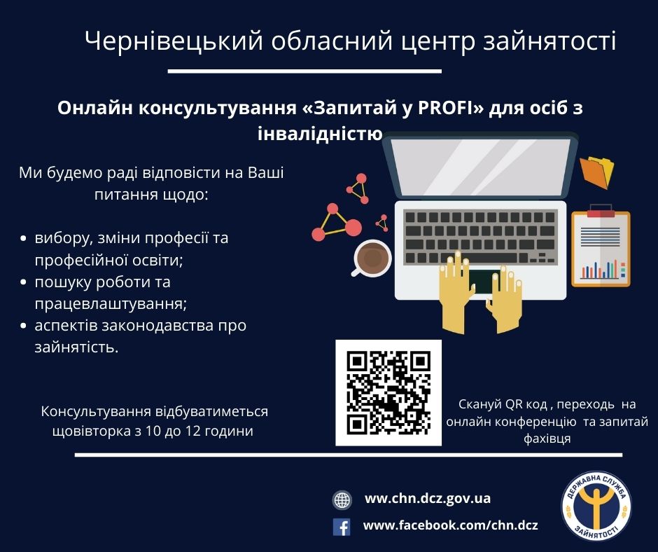 Чернівецький обласний центр зайнятості продовжує онлайн консультування «Запитай у PROFI» для осіб з інвалідністю.