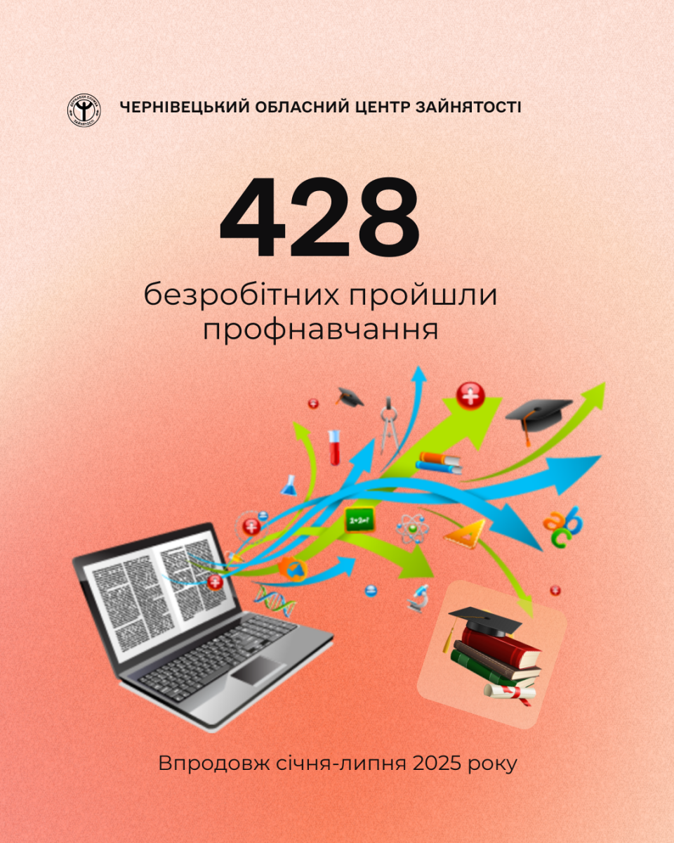 Впродовж січня-липня 2025 року за направленням обласної служби зайнятості проходили професійну підготовку, перепідготовку та підвищення кваліфікації 428 безробітних, що на 34,6% більше, ніж за цей період торік. Серед них 45 переселенців та 12 ветеранів.