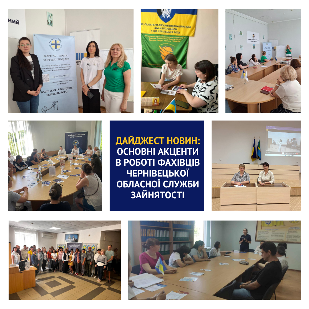 Цього тижня в центрі уваги фахівців Чернівецької обласної служби зайнятості – запобігання та протидія торгівлі людьми, професійне навчання шукачів роботи та, зокрема, УБД, компенсаційні програми для роботодавців, грантові програми для ветеранів та членів їхніх родин, ваучери на навчання, гранти для молоді тощо.