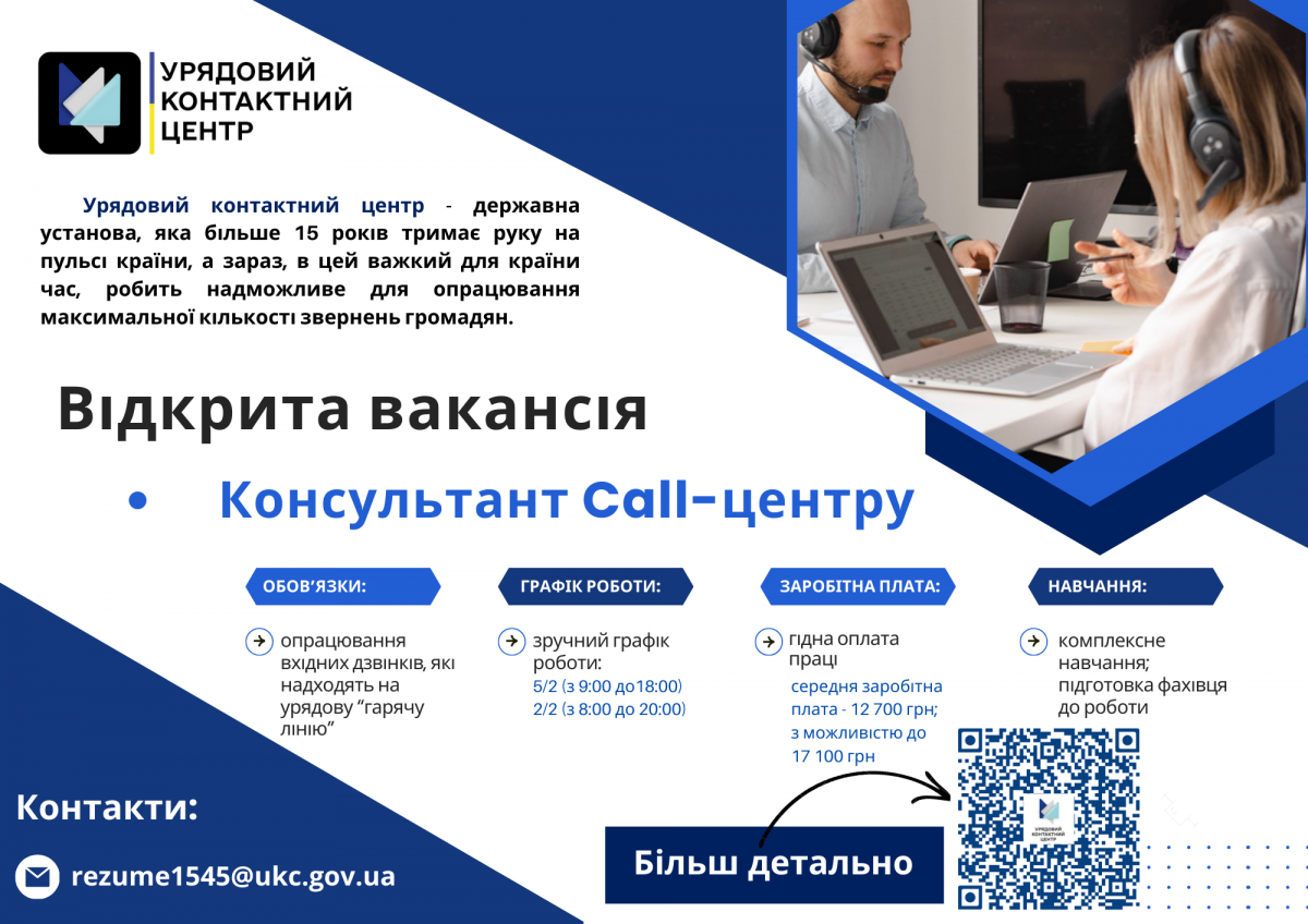 Резюме можна надсилати на електронну адресу: rezume1545@ukc.gov.ua