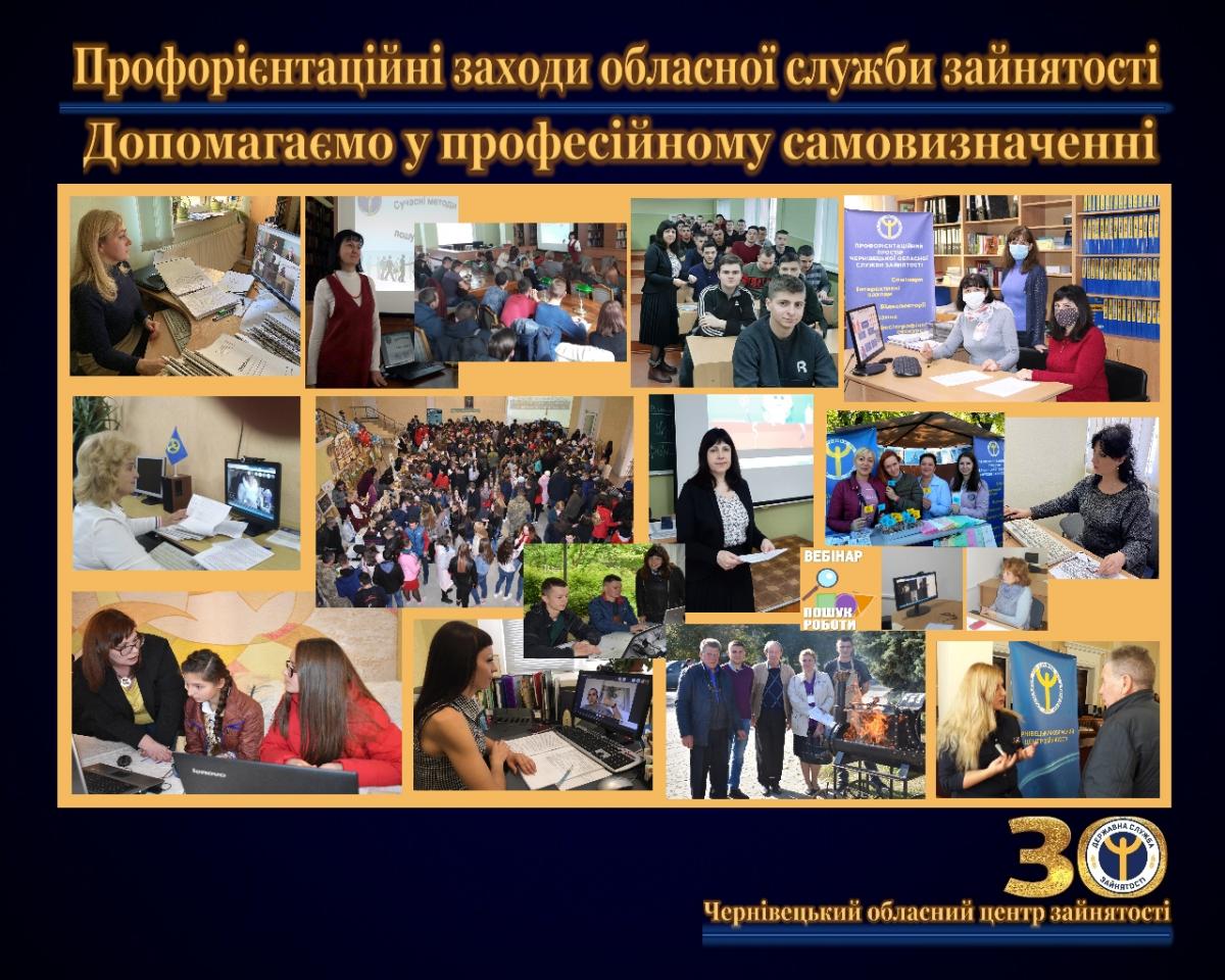 У 2020 році в умовах карантину профорієнтатори Чернівецького обласного центру зайнятості активно застосовують дистанційну комунікацію з клієнтами служби зайнятості та пропонують скористатися електронними сервісами ДСЗ, щоб усі охочі могли отримати нові знання та навичка, пройти тестування тощо. Це, зокрема, - освітній портал служби зайнятості,  платформа з профорієнтації та розвитку кар’єри, освітній портал «Coursera» тощо.