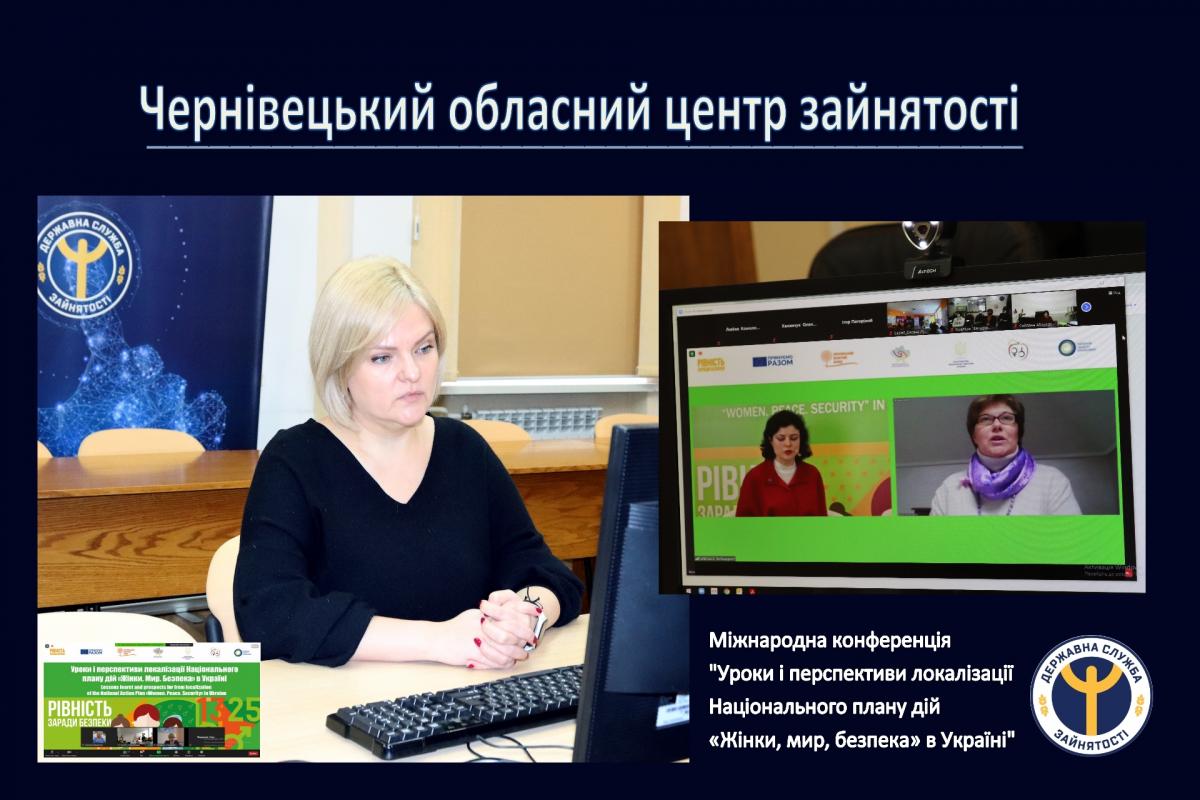 27 січня 2021 року директорка Чернівецького обласного центру зайнятості Любов Кожолянко взяла участь у міжнародній конференції "Уроки і перспективи локалізації Національного плану дій «Жінки, мир, безпека» в Україні".
