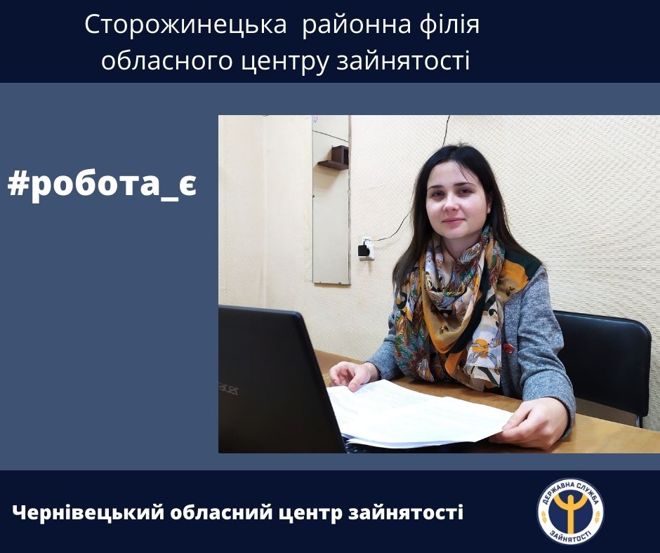 Існує хибна думка у молодих людей, що без досвіду роботи знайти перше робоче місце майже неможливо. Цю думку підтвердила історія працевлаштування молодої дівчини Софії Малютіної. Отримавши диплом спеціаліста правознавця звернулась в Сторожинецьку районну філію Чернівецького обласного центру зайнятості в пошуках роботи.