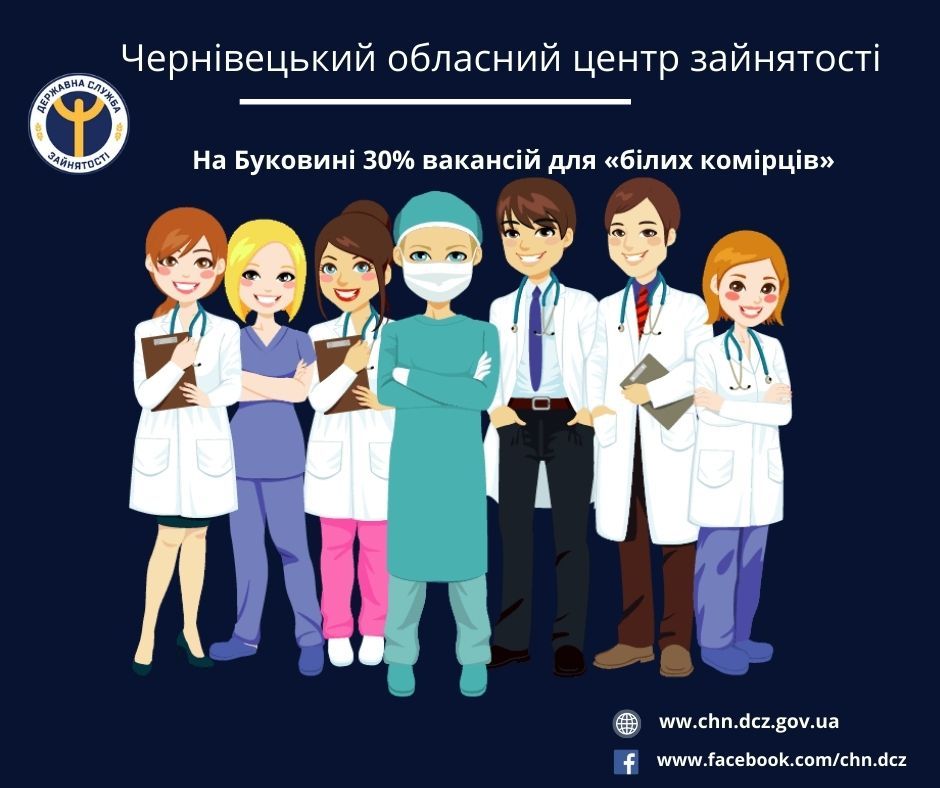На Буковині, станом на 4 лютого 2021 року, у базі даних Чернівецької обласної служби зайнятості понад 400 вакансій. Більшість з них для фахівців робітничих професій, майже 30% вакансій для «білих комірців».