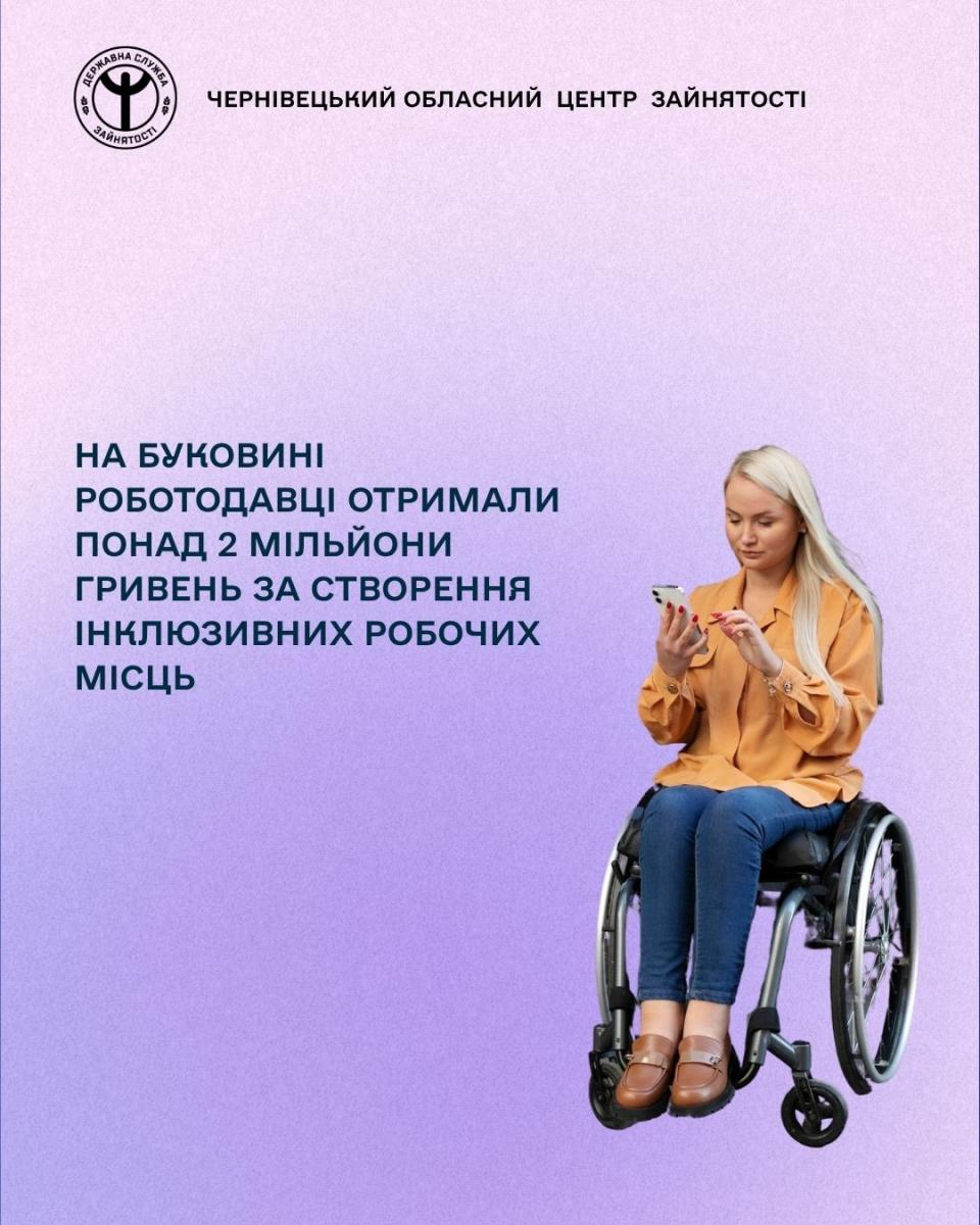У 2025 році вже 26 роботодавців Чернівецької області скористалися державною програмою компенсацій за облаштування робочих місць для людей з інвалідністю. Загальна сума компенсацій склала понад 2 мільйони гривень.