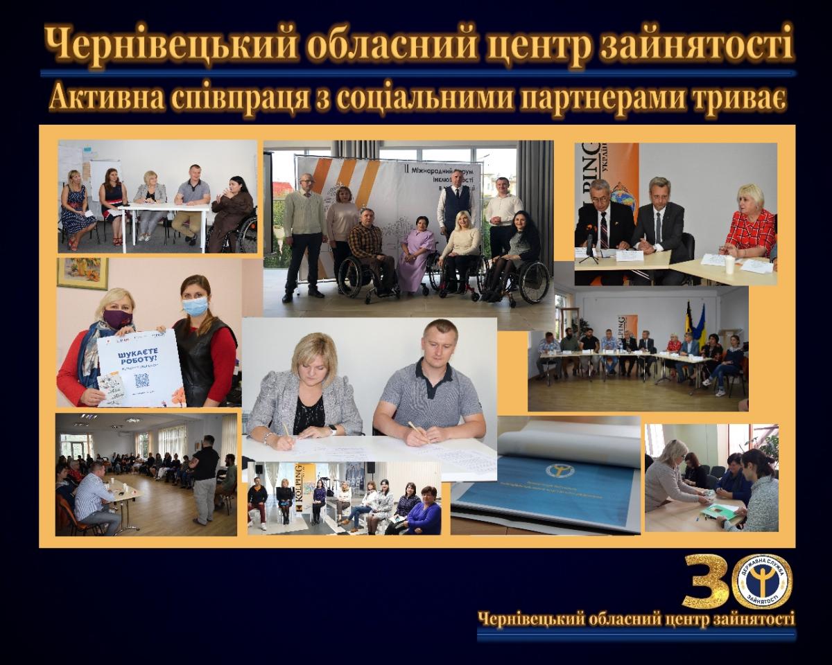 Серед соціальних партнерів, з котрими триває активна співпраця, - «Ресурсний центр Кольпінга» у Чернівцях, ГО «Сучасник плюс», Чернівецька обласна організація інвалідів Всеукраїнської організації інвалідів «Союз організацій інвалідів України», Центр громадської активності «Синергія», філія ДУ «Центр пробації у Чернівецькій області», Управління, соціальні служби тощо.