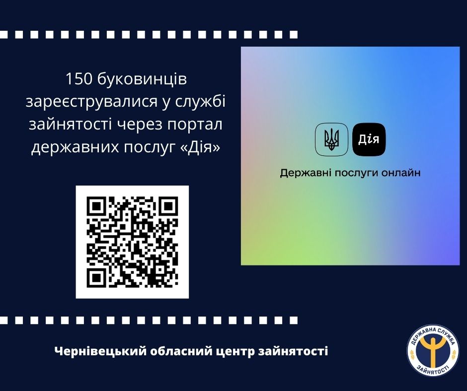 З початку дії карантинних обмежень, понад 150 мешканців Чернівецької області, які виявили бажання стати на облік у центрах зайнятості області, скористалися новою електронною послугою з реєстрації та оформлення виплат допомоги по безробіттю на онлайн-порталі державних послуг «Дія».