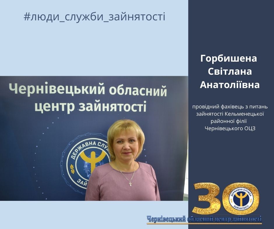 Світлана Горбишена працює в Кельменецькій районній філії Чернівецького обласного центру зайнятості з 1991 року, майже з самого початку створення служби зайнятості в районі.