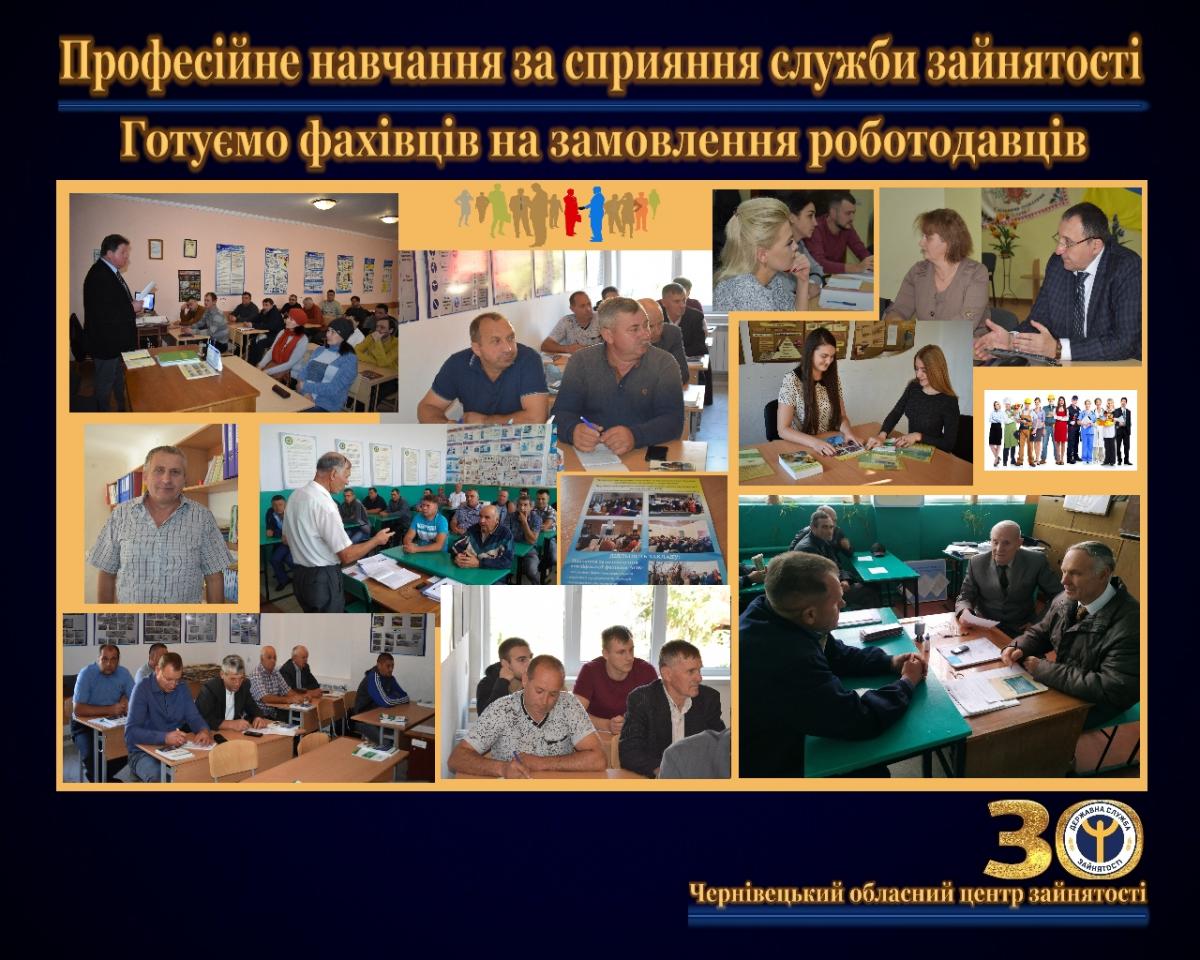 Фахівці Чернівецького ОЦЗ інформують клієнтів служби зайнятості щодо можливості підготувати необхідних фахівців у центрах професійно-технічної освіти ДСЗ на замовлення роботодавців. Нині в Україні діють 11 центрів професійно-технічної освіти державної служби зайнятості, де готують кваліфікованих спеціалістів. Окрім цього служба зайнятості надає зареєстрованим безробітних соціальну послугу з професійної підготовки, перепідготовки та підвищення кваліфікації.