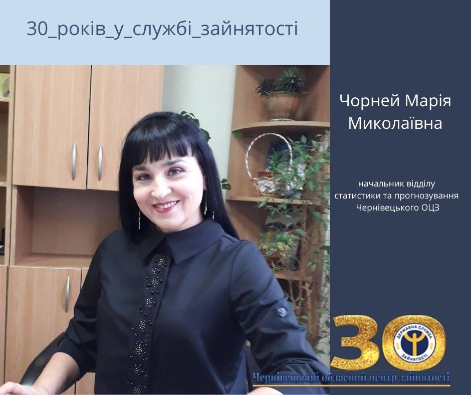 Марія Чорней працює в Чернівецькій обласній службі зайнятості, з часу її створення, а до того - у Бюро по працевлаштуванню.