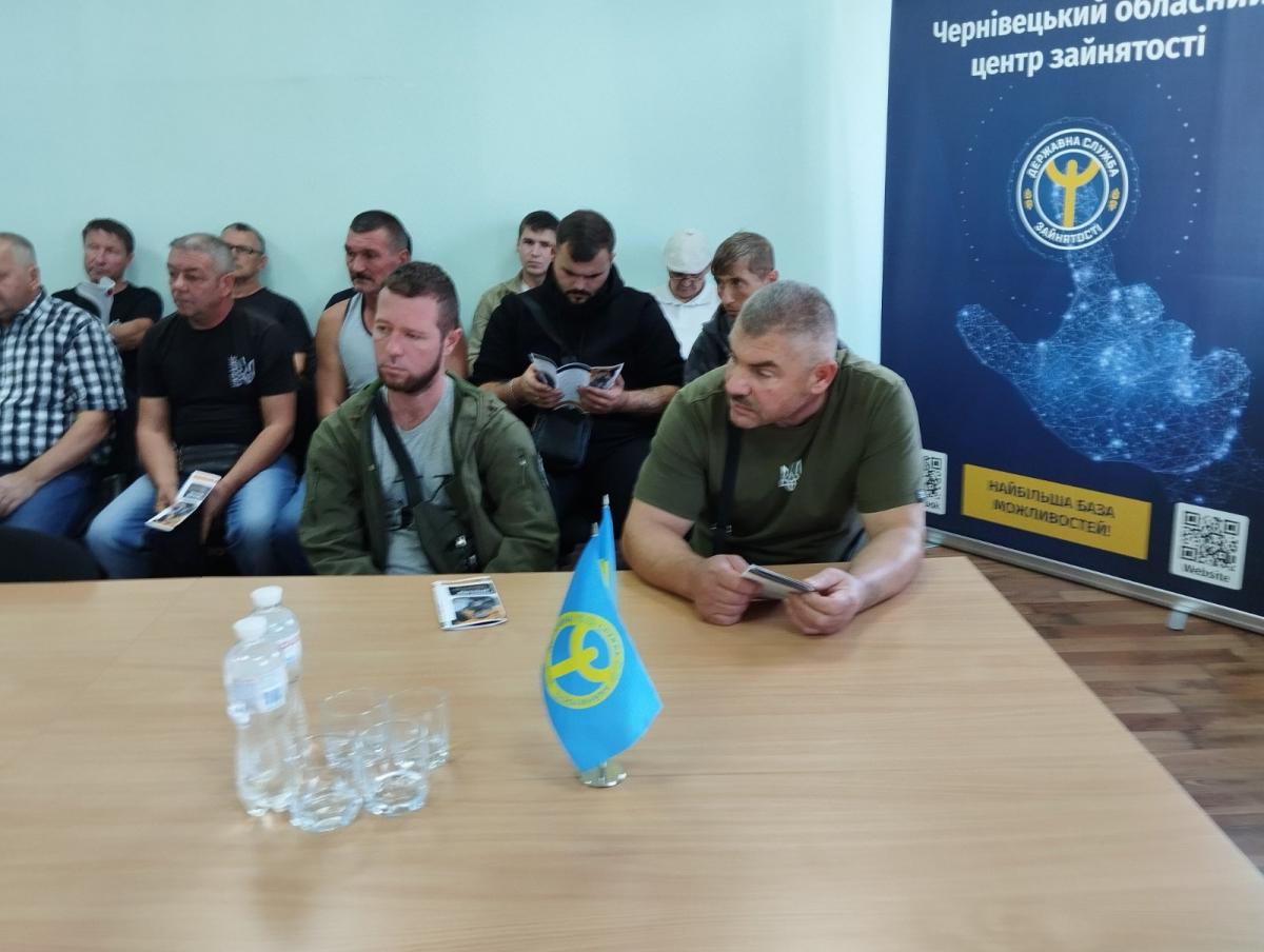Начальник управління реалізації політики зайнятості Чернівецького обласного центру зайнятості Оксана Симак та заступник начальника управління – начальник відділу розвитку торгівлі та підприємництва управління промисловості та підприємництва Департаменту регіонального розвитку обласної державної адміністрації Ігор Романчук проводять виїзні зустрічі з військовослужбовцями, членами їх родин, а також вдовами захисників Вижницького, Дністровського та Чернівецького районів області..