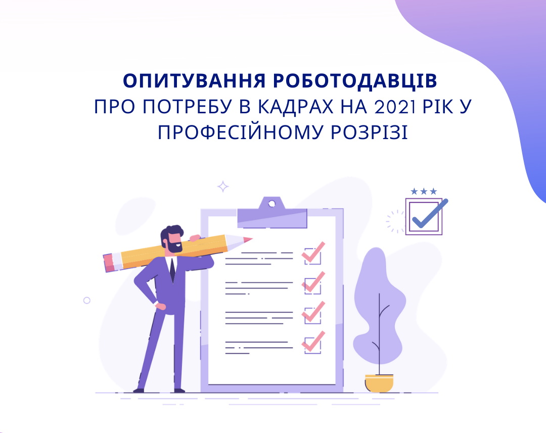 На сайті державної служби зайнятості триває опитування роботодавців про потребу в кадрах на 2021 рік у професійному розрізі.
