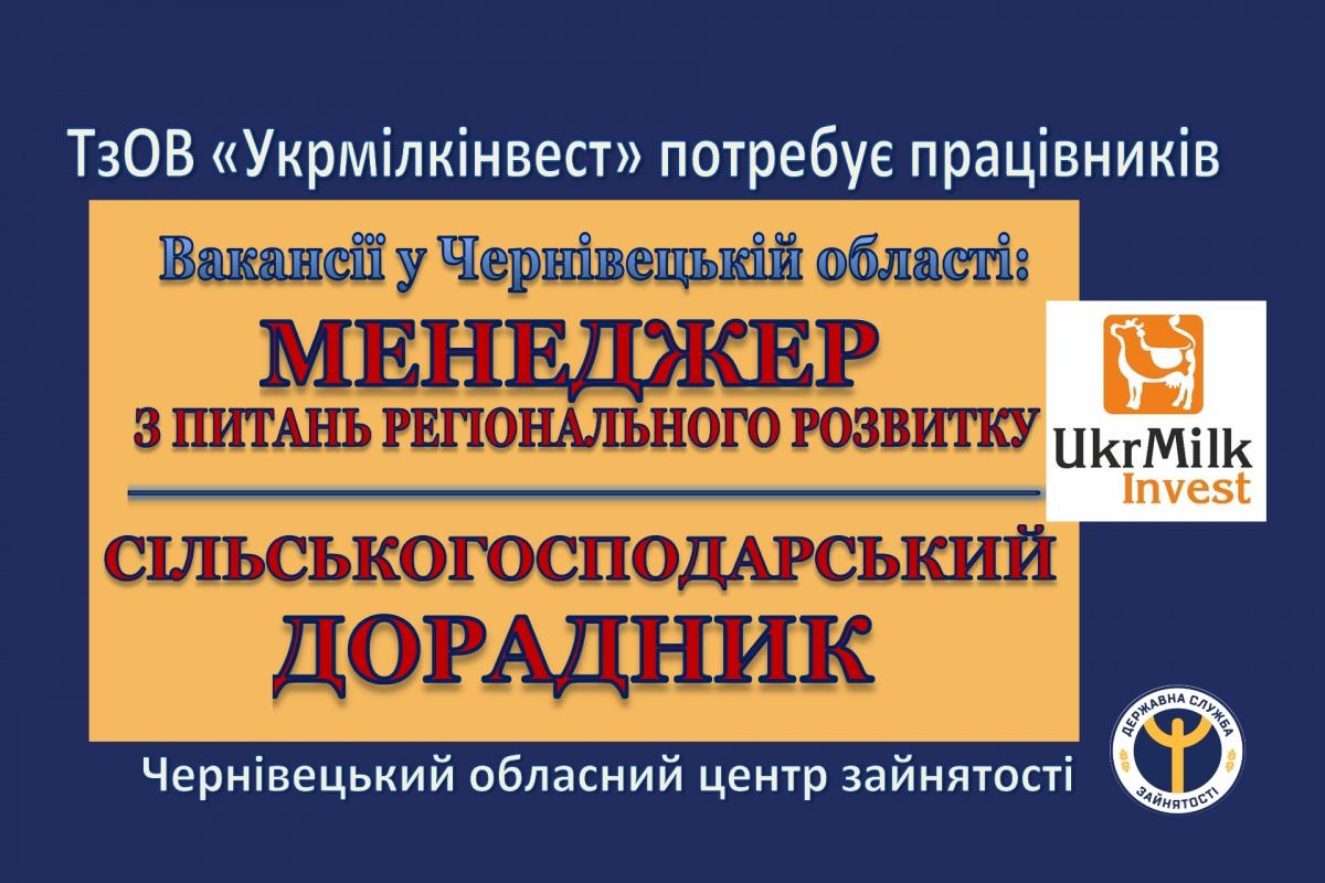 ТзОВ «Укрмілкінвест» має потребу у працівниках в різних областях України, зокрема, і в Чернівецькій, для розвитку проєкту Сімейних молочних ферм, який має на меті створити всеукраїнську мережу сімейних підприємств.