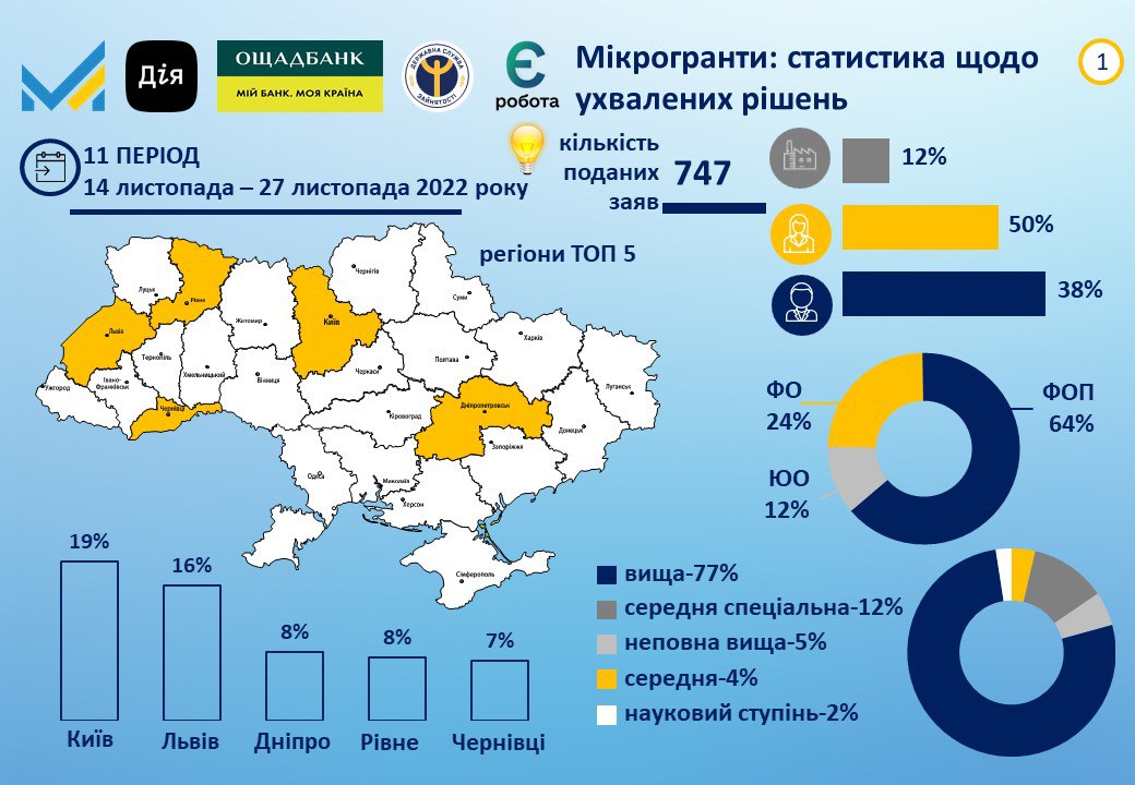 Мікрогранти: статистика щодо ухвалених рішень по XІ періоду прийому заяв, який тривав з 14 по 27 листопада 2022 року.