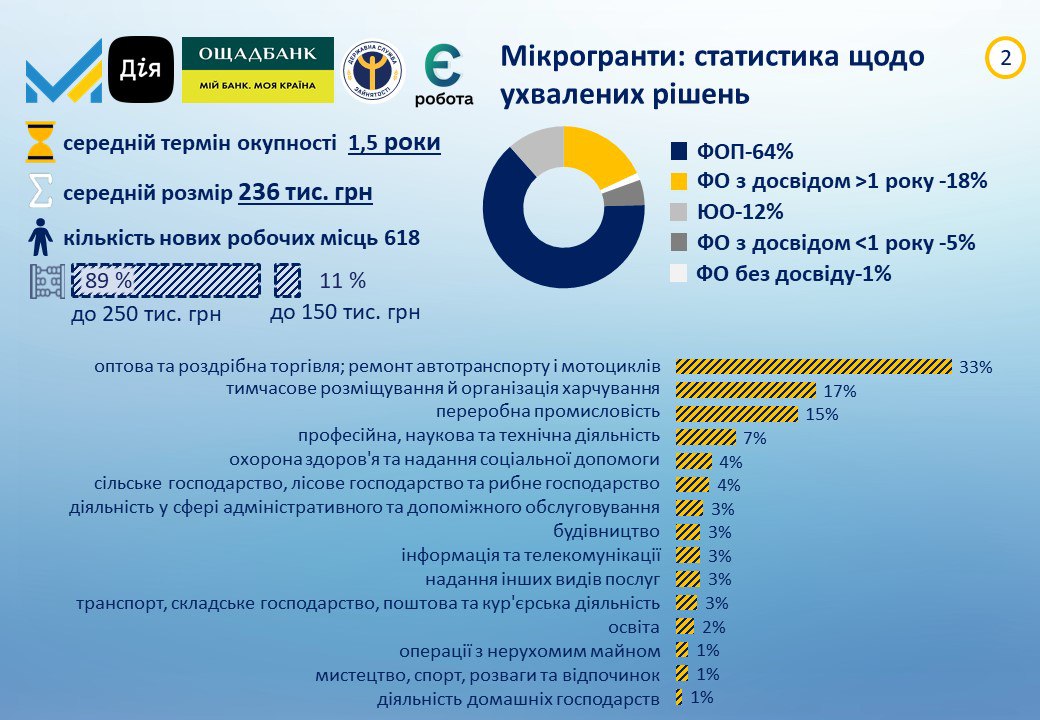 Планується створити майже 618 нових робочих місця. Всі охочі стати підприємцями та підприємці з досвідом можуть скористатися програмою, подавши заяву через портал «Дія».