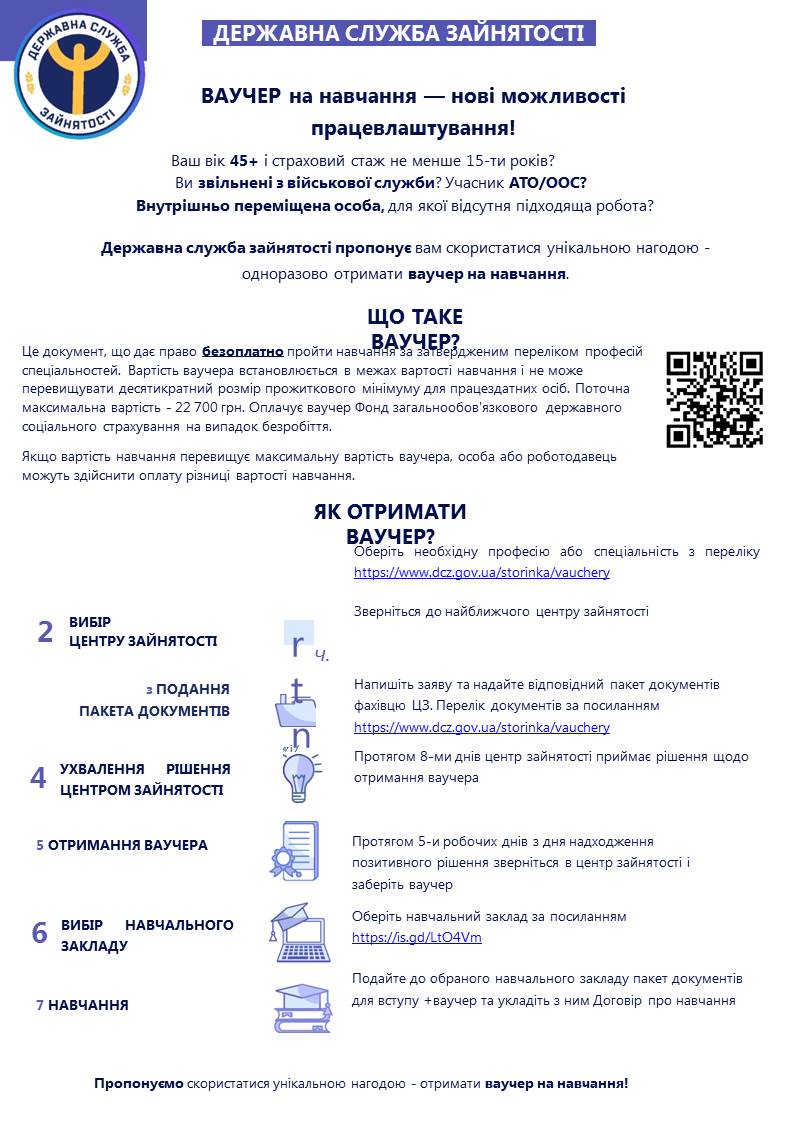 Ознайомитися з переліком професій можна тут (Перелік спеціальностей та професій за якими може бути виданий ваучер)