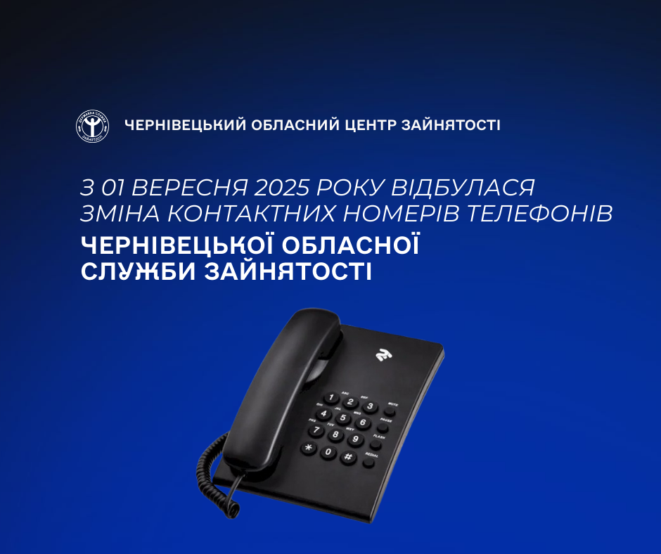 Інформуємо вас, що з 01 вересня 2025 року відбулася зміна контактних номерів телефонів Чернівецької обласної служби зайнятості.