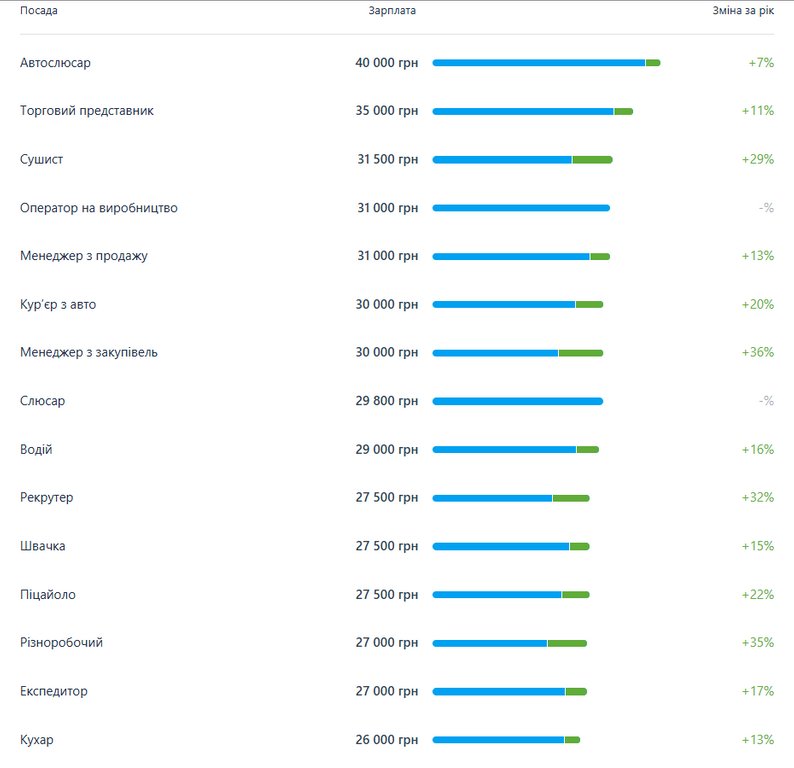 Водночас за даними Work.ua, середня зарплата у Чернівцях становить понад 24 тисячі гривень. Найбільше зросли зарплати адміністраторів магазинів (на 41%), менеджерів із закупівель (на 36%) та різноробочих (на 35%).